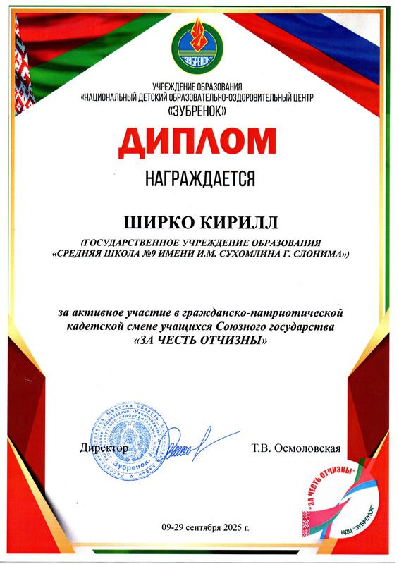 Вот и подошла к своему завершению гражданско-патриотическая кадетская смена Союзного государства "ЗА ЧЕСТЬ ОТЧИЗНЫ - 2025".