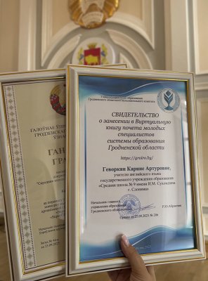 На торжественном мероприятии в областном центре чествовали и учителя английского языка ГУО «Средняя школа № 9 имени И.М.Сухомлина г.Слонима», победителя областного этапа конкурса «SuperПРОФИ» Карину Артуровну Геворкян. В двойне приятно, что молодой педагог занесена в Виртуальную книгу почета молодых специалистов системы образования Гродненской области.