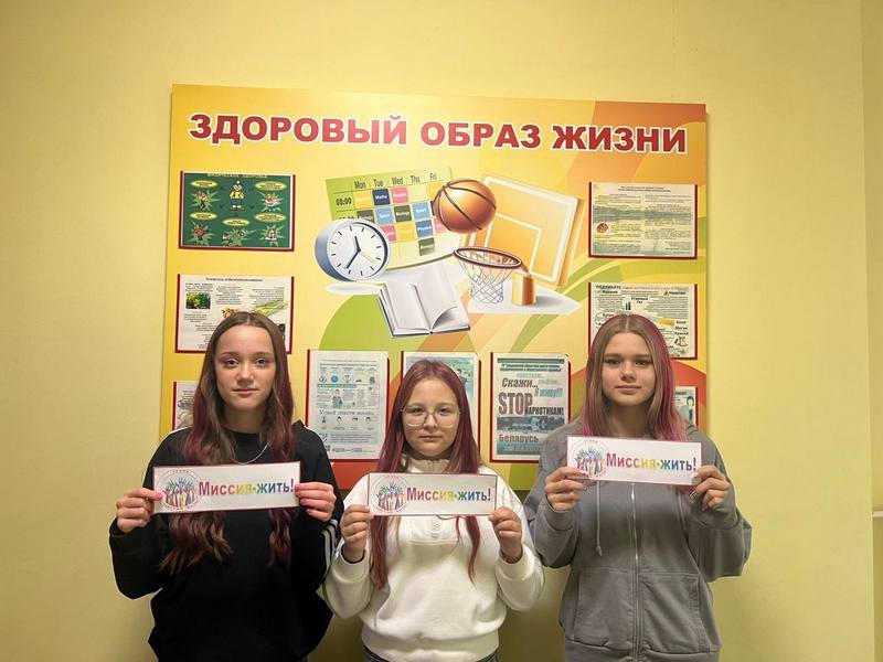 «Миссия жить!» — это профилактическая акция, направленная на пропаганду здорового образа жизни и борьбу с негативными явлениями, в первую очередь с наркоманией, среди учащихся и молодежи. Акция проводится в учреждениях образования и включает образовательные, спортивные и творческие мероприятия, направленные на формирование негативного отношения к наркотическим веществам и позитивной жизненной позиции.