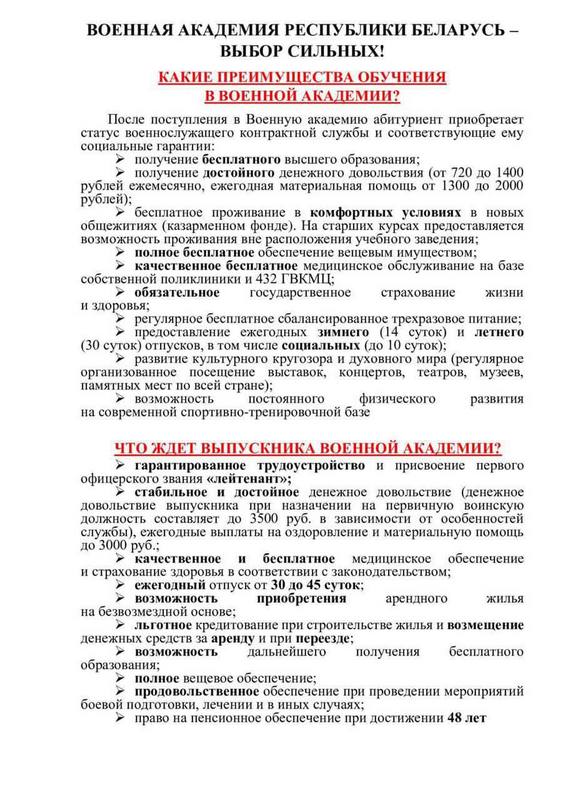 «Если ты ищешь настоящую школу жизни, верных друзей и достойную профессию — поступай, как мы, в Военную академию Республики Беларусь! Это путь чести, дисциплины и настоящего мужского братства».