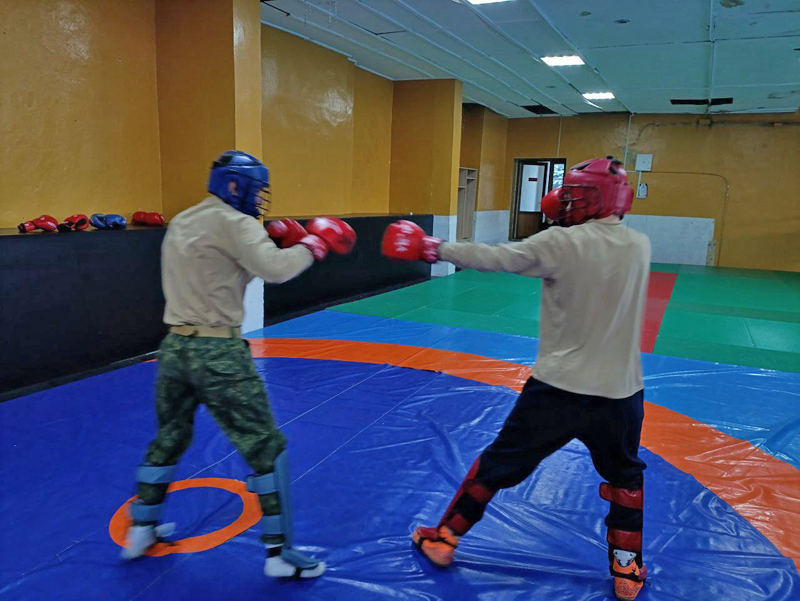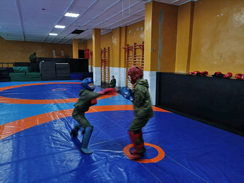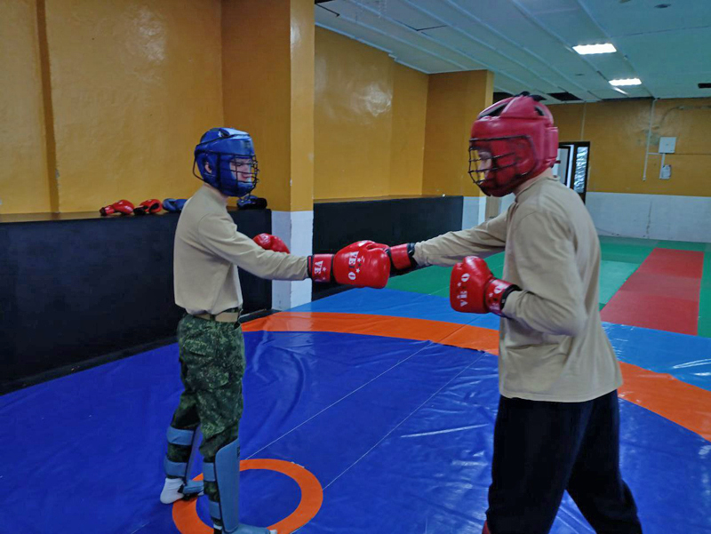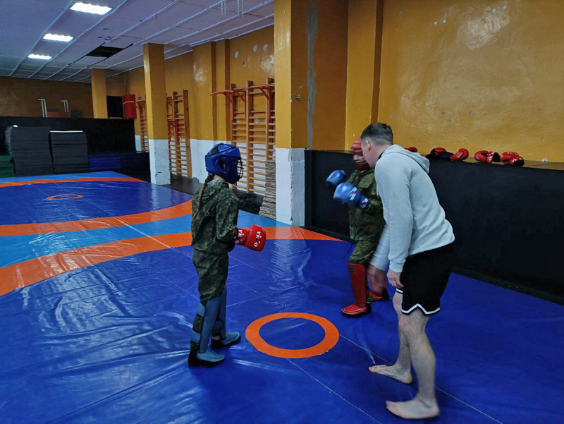 Воспитанники отрабатывали технику рукопашного боя, а затем применили её в учебных спаррингах.