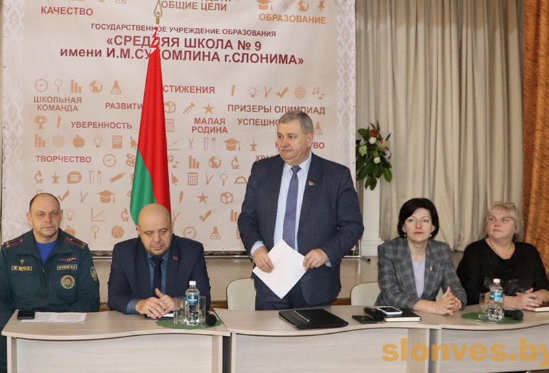 Информационная группа во главе с председателем Слонимского районного Совета депутатов, председателем Слонимского районного отделения Белорусской партии «Белая Русь» Олегом Мечиславовичем Таргонским встретилась с коллективами средней школы № 9 имени И.М. Сухомлина, детского сада № 14 и городской поликлиники УЗ «Слонимская ЦРБ».