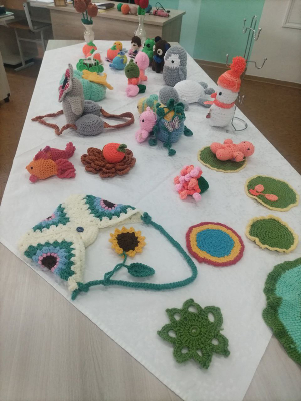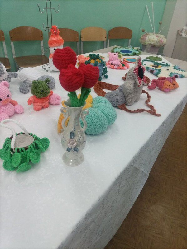 Руки мастериц не знали покоя: выставка вязаных работ, мастер-класс «Тюльпаны». Даже новички ощутили магию крючка – из нити рождались нежные весенние цветы!