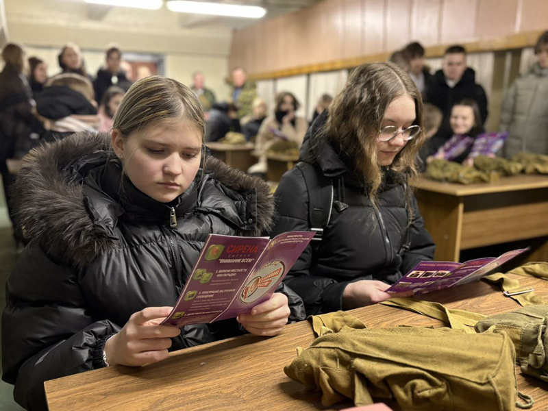 Старший инженер Максим Юрьевич Корней и сотрудники ГО рассказали, как работает система оповещения: что означают сигналы сирен, как быстро нужно реагировать, куда обращаться за информацией через радио и телевидение. Ребятам вручили информационные буклеты с советами от МЧС.