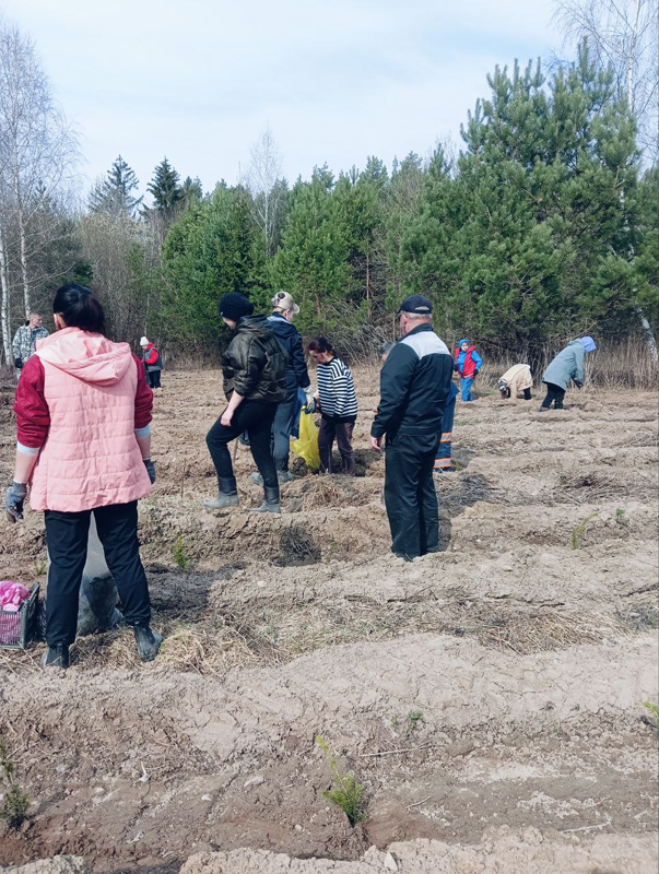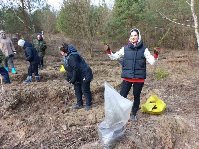 Дружная команда в составе руководства школы, педагогов и работников учреждения под руководством опытных лесников Слонимского лесхоз высадили более 1000 молодых деревьев и превратили пустующий участок в зелёный массив.