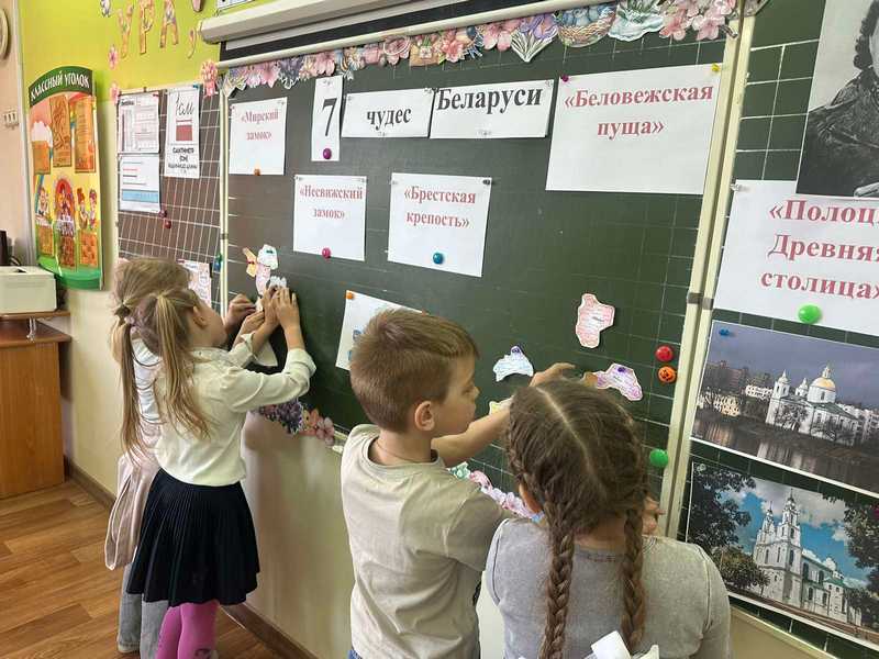 На занятии по теме «7 чудес Беларуси» в группе продленного дня ребята с увлечением слушали рассказы о самых удивительных местах нашей страны. Ученики с интересом рассматривали картинки, задавали вопросы и делились своими впечатлениями, старались назвать свои любимые удивительные места и рассказывали о них с искренним восторгом. В ходе урока учащиеся не только расширили свои знания о Беларуси, но и почувствовали гордость за свою родину. Такое мероприятие прошло в тёплой и приятной атмосфере, оставив у детей яркие воспоминания и желание узнавать больше о родных местах.