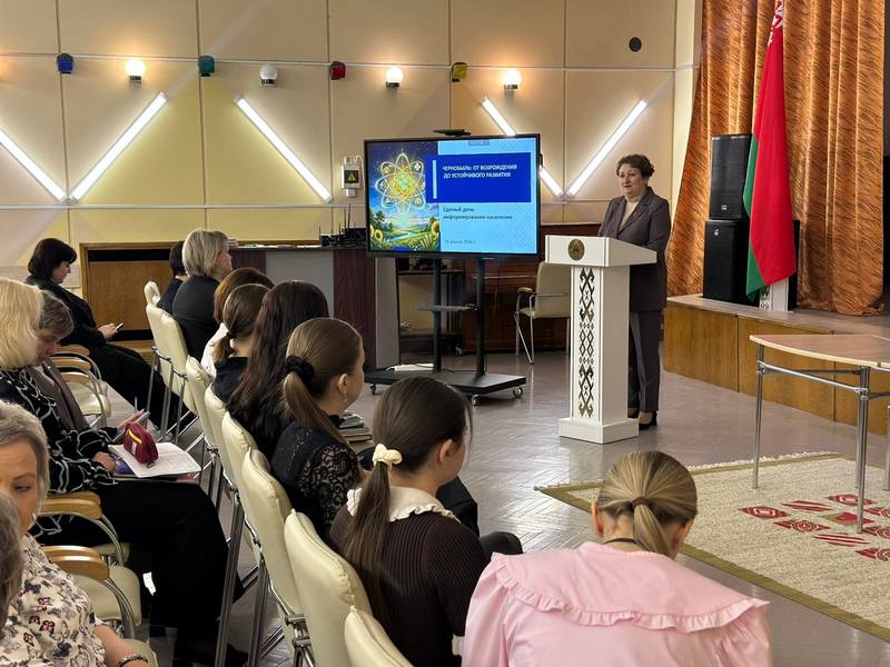 16.04.2026 в трудовом коллективе ГУО "Средняя школа № 9 имени И.М.Сухомлина г.Слонима" прошёл Единый день информирования, по теме: "Чернобыль: от возрождения до устойчивого развития". Были рассмотрены вопросы по возвращению пострадавших территорий после аварии на Чернобыльской АЭС к полноценной жизни. В своем выступлении заместитель директора обратила внимание на то, что социальная защита населения — ключевой приоритет политики Республики Беларусь.