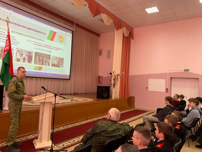 Воспитанники военно-патриотического клуба «Гренада» 28 февраля на профориентационной встрече с представителем пограничной заставы «Дробишуны» Лидского пограничного отряда.
