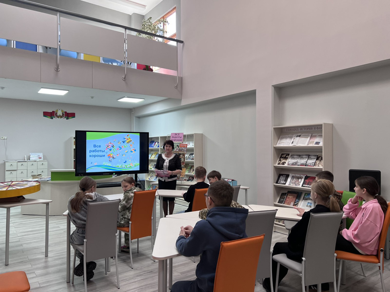 С этой целью с учащимися 5 класса проведен познавательный пазл «Все работы хороши!». Ребята вспомнили пословицы о труде, угадывали профессию из «Сундучка знаний», играли в «Поле чудес».