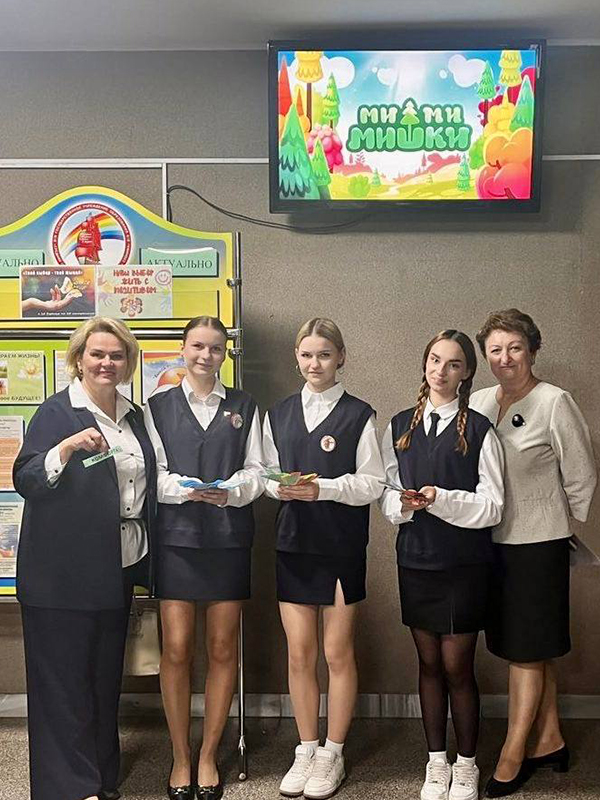 Во время перемен для создания благоприятной атмосферы в холле была организована трансляция добрых мультипликационных фильмов, способствующих формированию позитивного настроя.