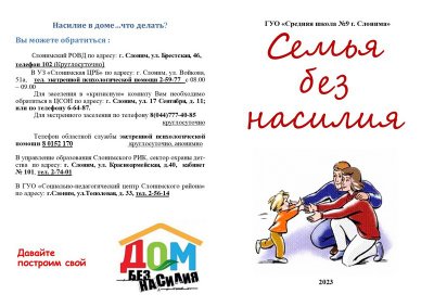 ☎ О фактах жестокого обращения с ребенком или насилия над ним можно сообщить в сектор охраны детства (тел. 2 74 01), СПЦ (тел. 2 56 14), ИДН (тел. 4 71 31)